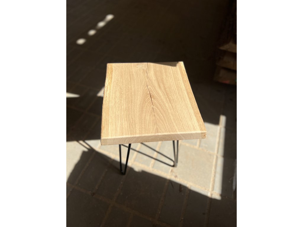 Praskliny, suky a drobné nepravidelnosti ponecháváme v přirozeném stavu – jsou pouze pečlivě vyčištěné, bez použití tmelu. Díky tomu si deska zachovává autentický charakter a jedinečný vzhled masivního dřeva.