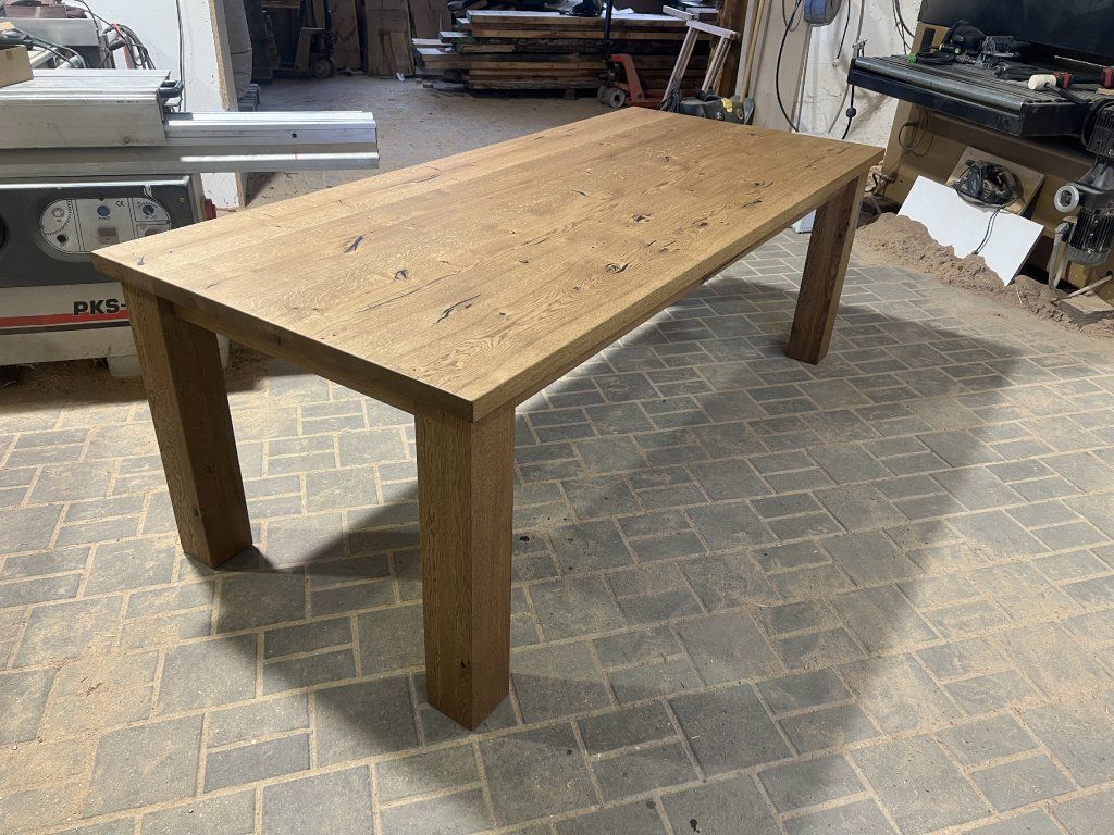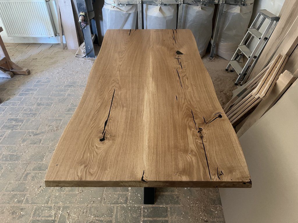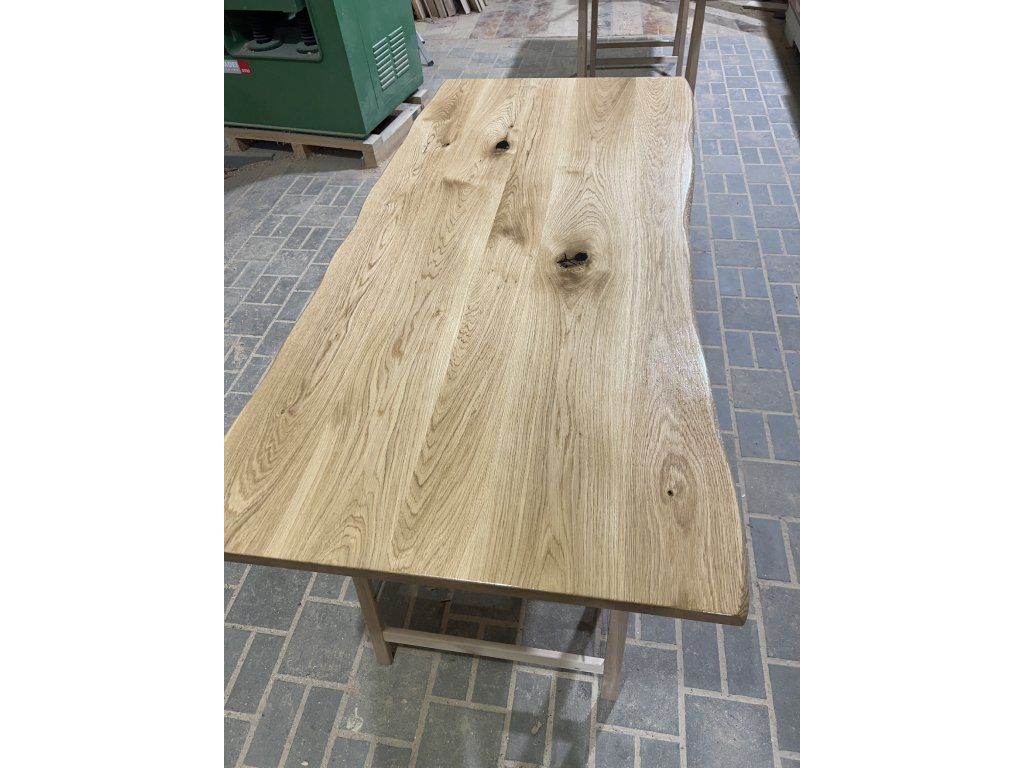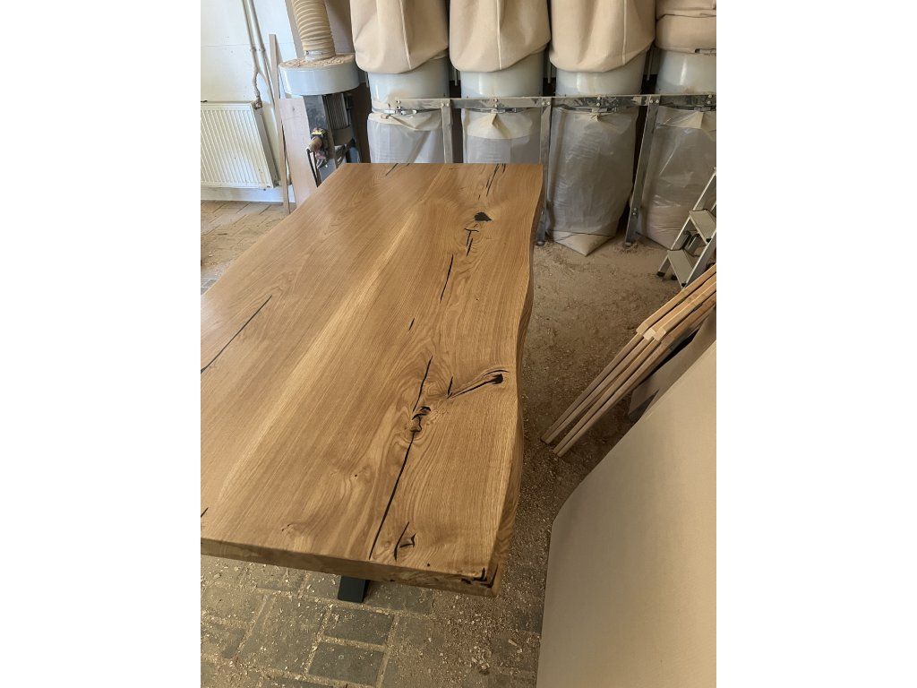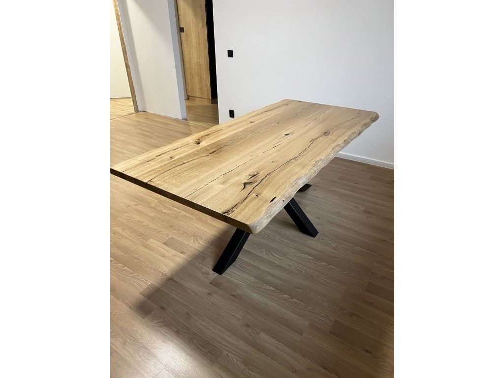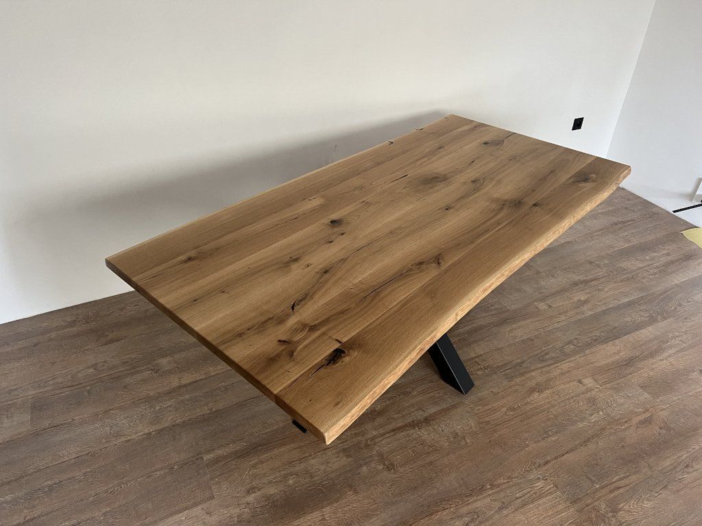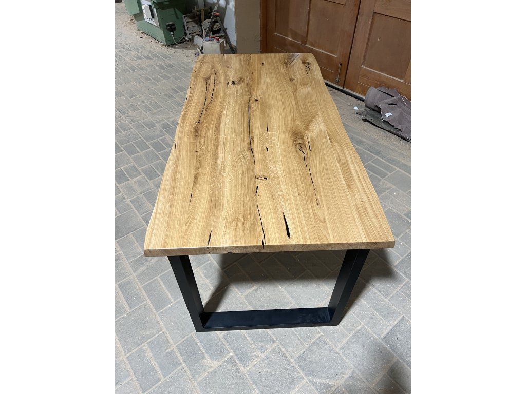Masivní dubová stolová deska připravená pro vlastní dokončení a výrobu nábytku.